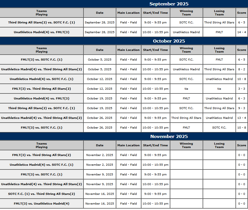 ** NOTE: ALL 9pm scheduled games will begin after the 8pm game is complete. There will be an allowed warmup time. Games will not start at exactly 9pm.