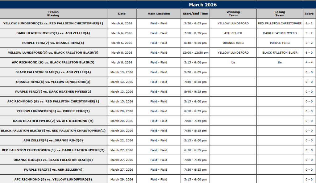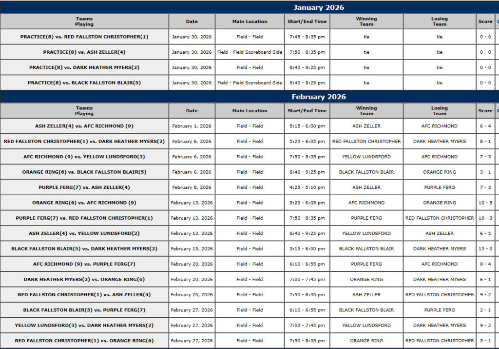 BOYS 10U INHOUSE / REC SCHEDULE October 29, 2025 | No Comments | Uncategorized BOYS INHOUSE / REC 2026 WINTER 2 SCHEDULE DATES BELOW ARE PLAYOFFS SLOTS