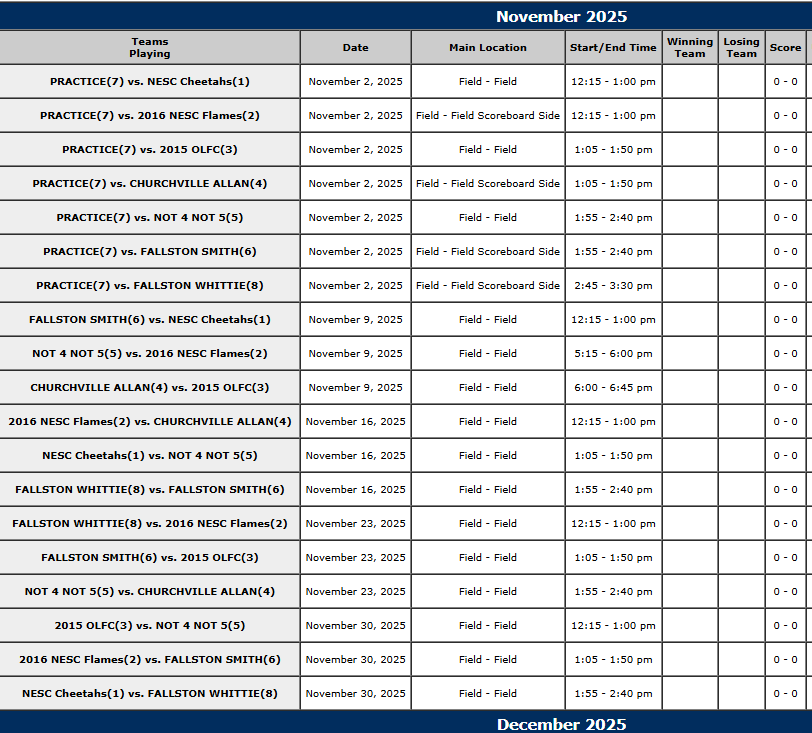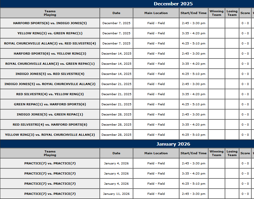 GIRLS 10U INHOUSE / REC WINTER 1 2025 – 2026 SCHEDULE